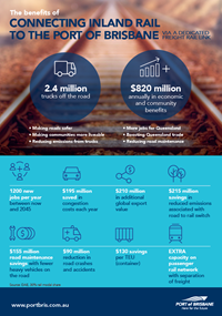 The DAE paper found that if freight had a dedicated rail connection to the Port of Brisbane, and a 30% rail modal share could be achieved by 2035, the benefits would include: